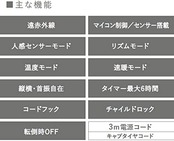 人感センサー搭載で、人の不在を検知すると15分後に自動停止します。