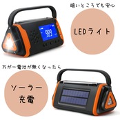 ■使用可能時間(満充電時):ラジオ:18~20時間、Aux音楽再生:30~35時間※いずれも音量は中音量で使用。LED照明:18~20時間
